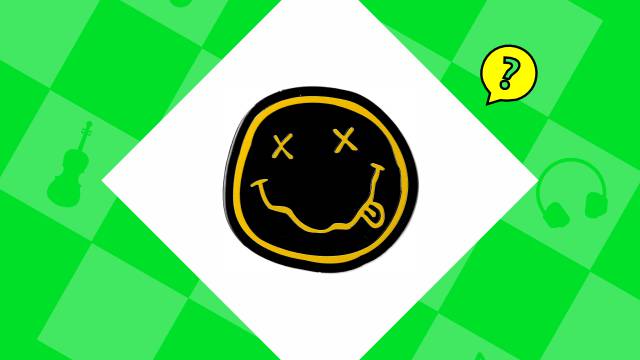 [D] Nirvana | The crossed-out smiley appeared mysteriously in 1991. Grunge's anti-happiness face mocked both acid house culture and mainstream success simultaneously.